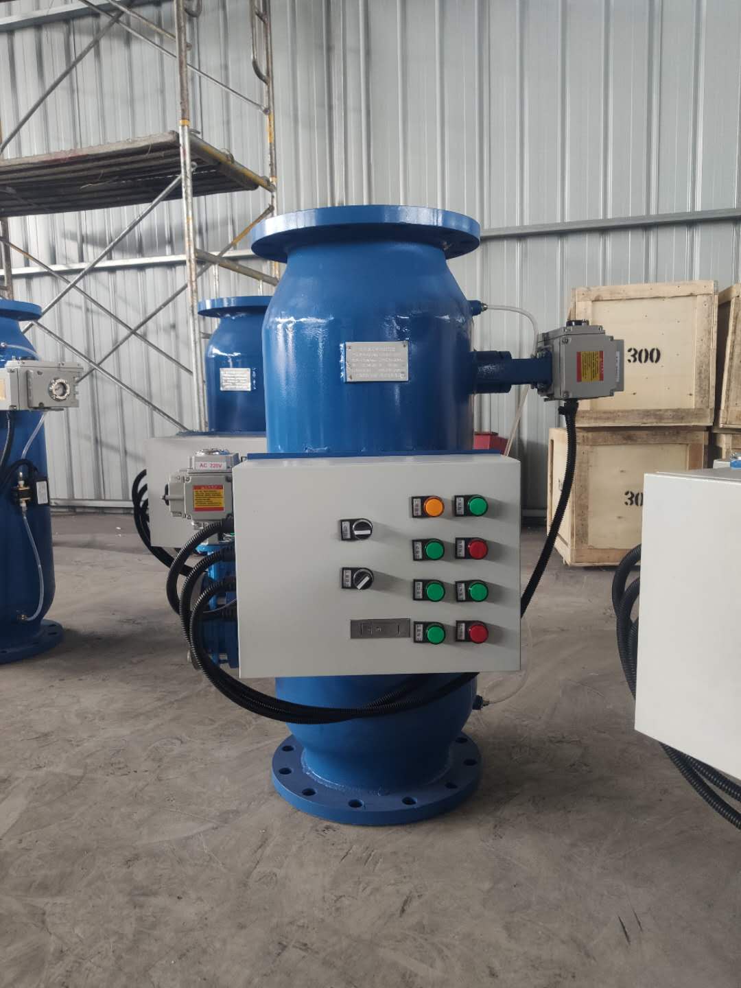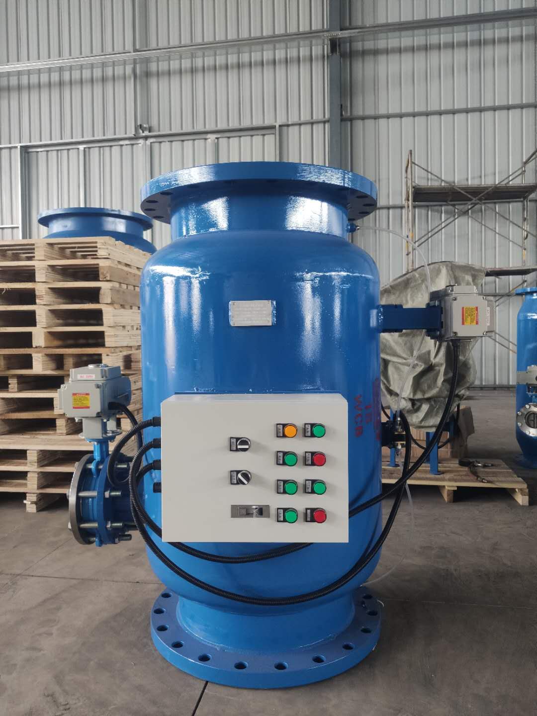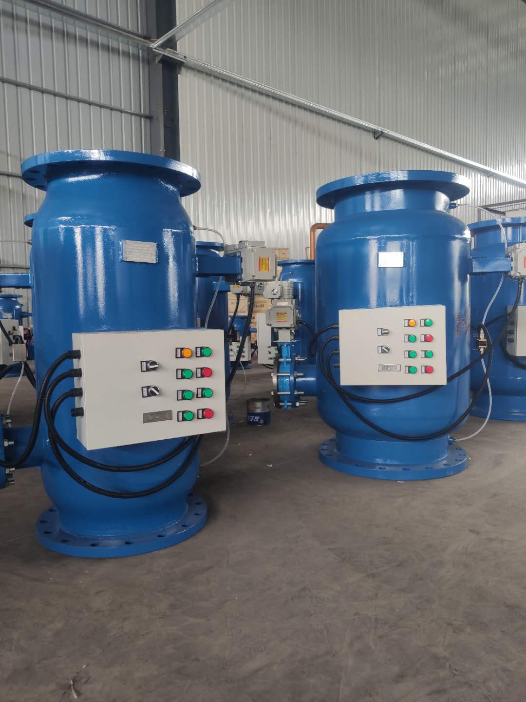 反沖洗過濾器主要由**碳鋼筒體,過濾組件,水流導(dǎo)向閥和排污裝置所組成,當(dāng)過濾器工作時(shí),水流導(dǎo)向閥處于開啟狀態(tài),水流自入口進(jìn)入過濾器,經(jīng)濾網(wǎng)過濾到出口,水中污物雜質(zhì)等被濾網(wǎng)攔截。當(dāng)過濾器需要排污時(shí),關(guān)閉水流導(dǎo)向閥,打開排污閥,水流經(jīng)濾網(wǎng)前半程過濾,一部分水經(jīng)過濾后直接流入系統(tǒng),另一部分水由濾網(wǎng)外側(cè)流入內(nèi)側(cè),不斷沖刷濾網(wǎng)內(nèi)壁上的污物,并經(jīng)排污口排出,起到反向自動(dòng)沖洗濾網(wǎng)和排出污物的作用,整個(gè)反沖排污過程不用關(guān)閉系統(tǒng),無需人工進(jìn)行清洗濾芯,實(shí)現(xiàn)了在線排污。